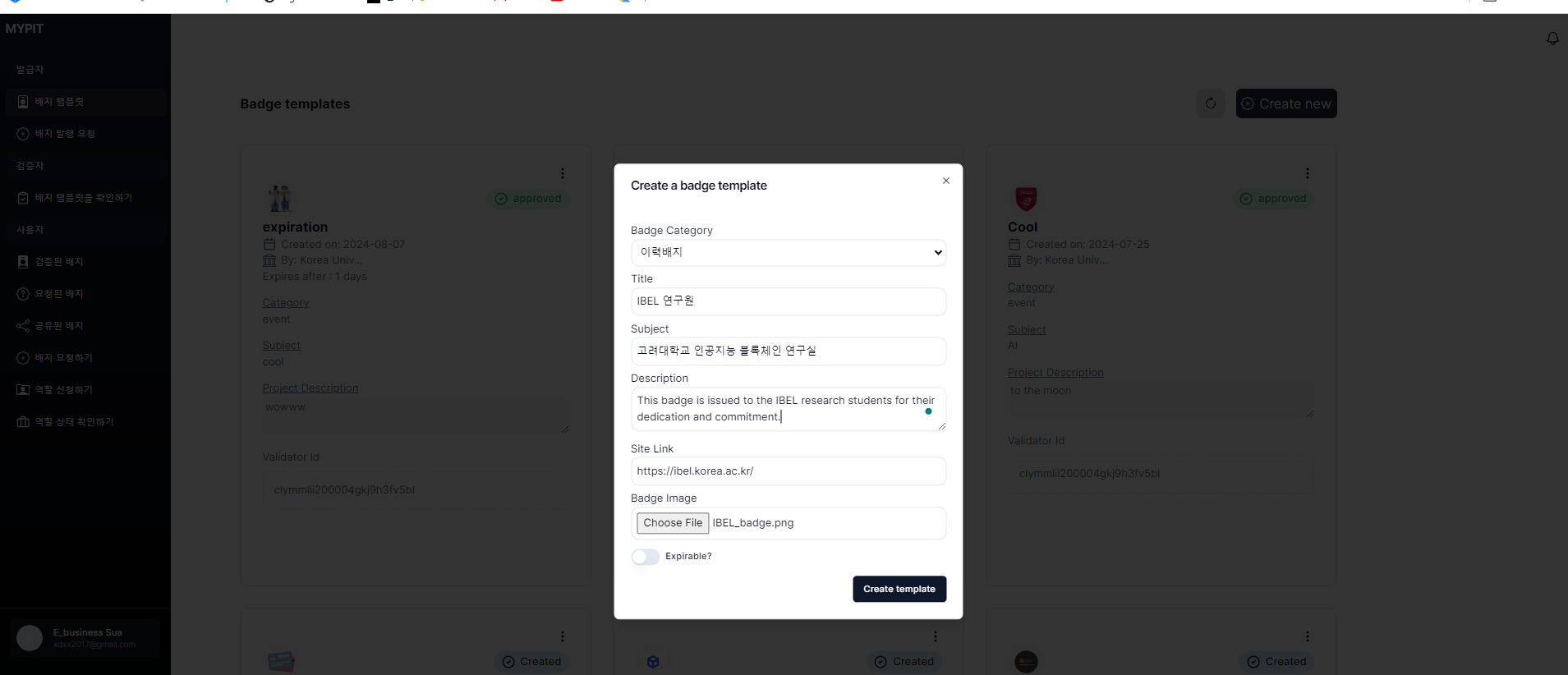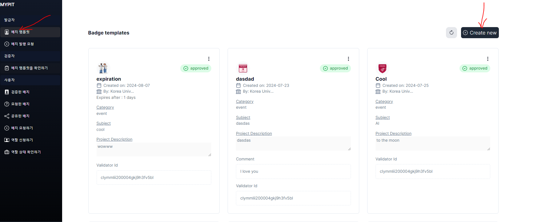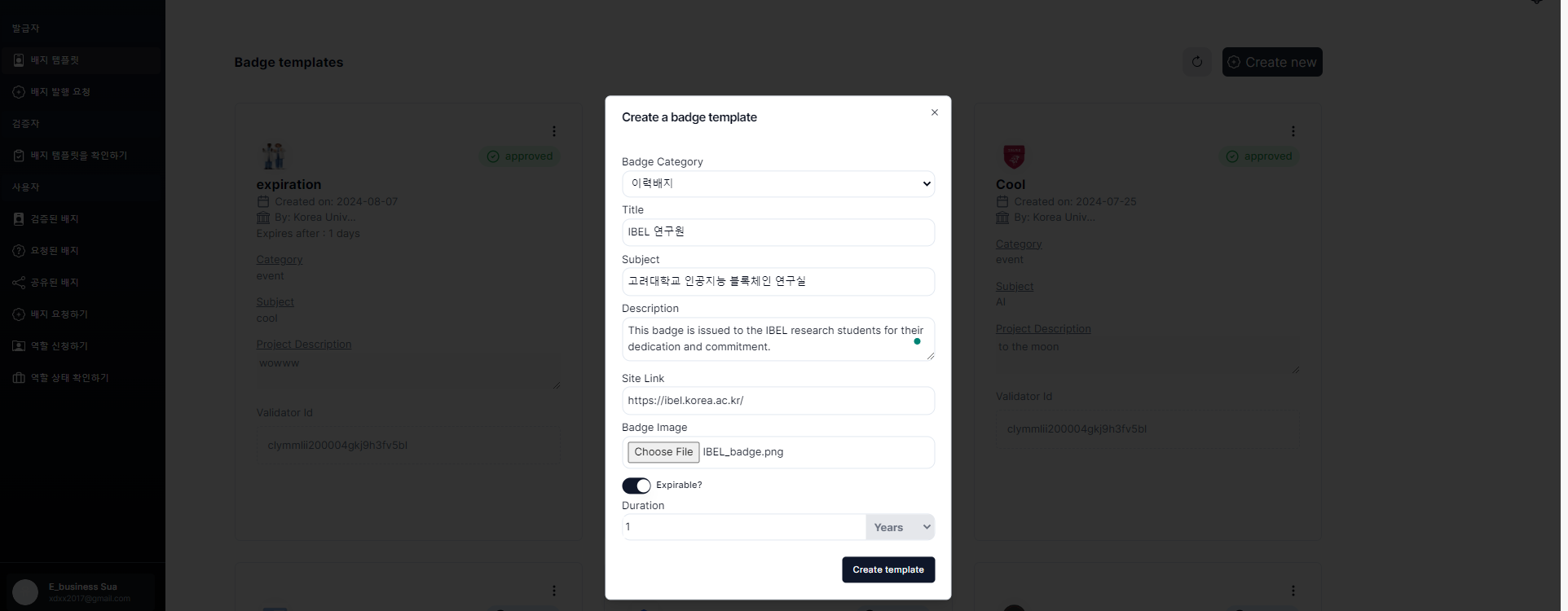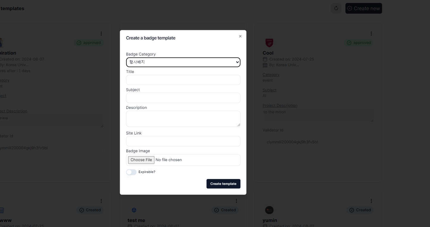 1. After logging in,  click on then 배지 템플릿